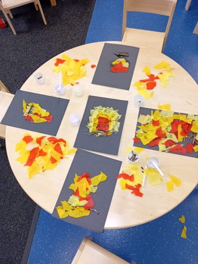 Finally, we ended the week with bonfire crafts made from forest school sticks and tissue paper, and a wonderfully messy firework gloop session, full of laughter, texture, and colour as the children discovered just how slippery and melty gloop can be!