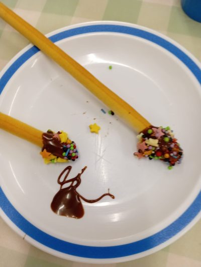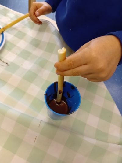 Of course, no Bonfire Week would be complete without a treat! We made chocolate sparklers using breadsticks and melted chocolate, a delicious and creative way to celebrate.